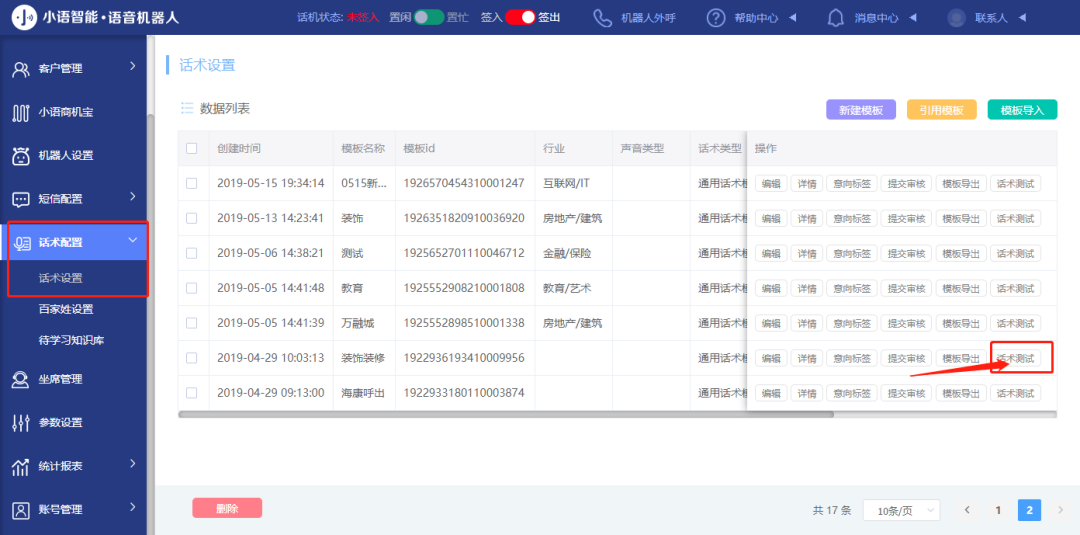 1、话术配置—>话术设置—>话术训练。