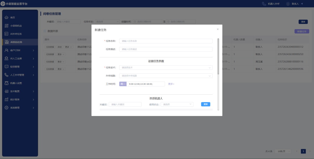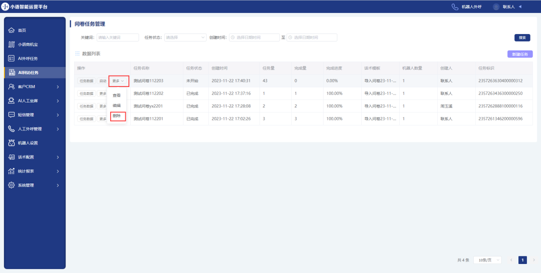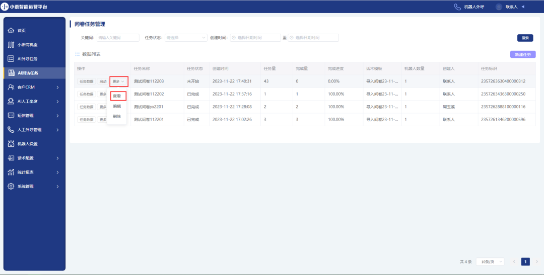 14、AI回访任务,更多—>查看,可查看任务详情。