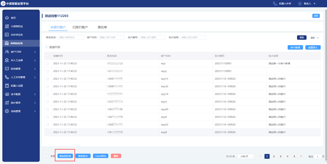 11、AI回访任务,未拨打客户和已拨打客户,添加到任务功能。